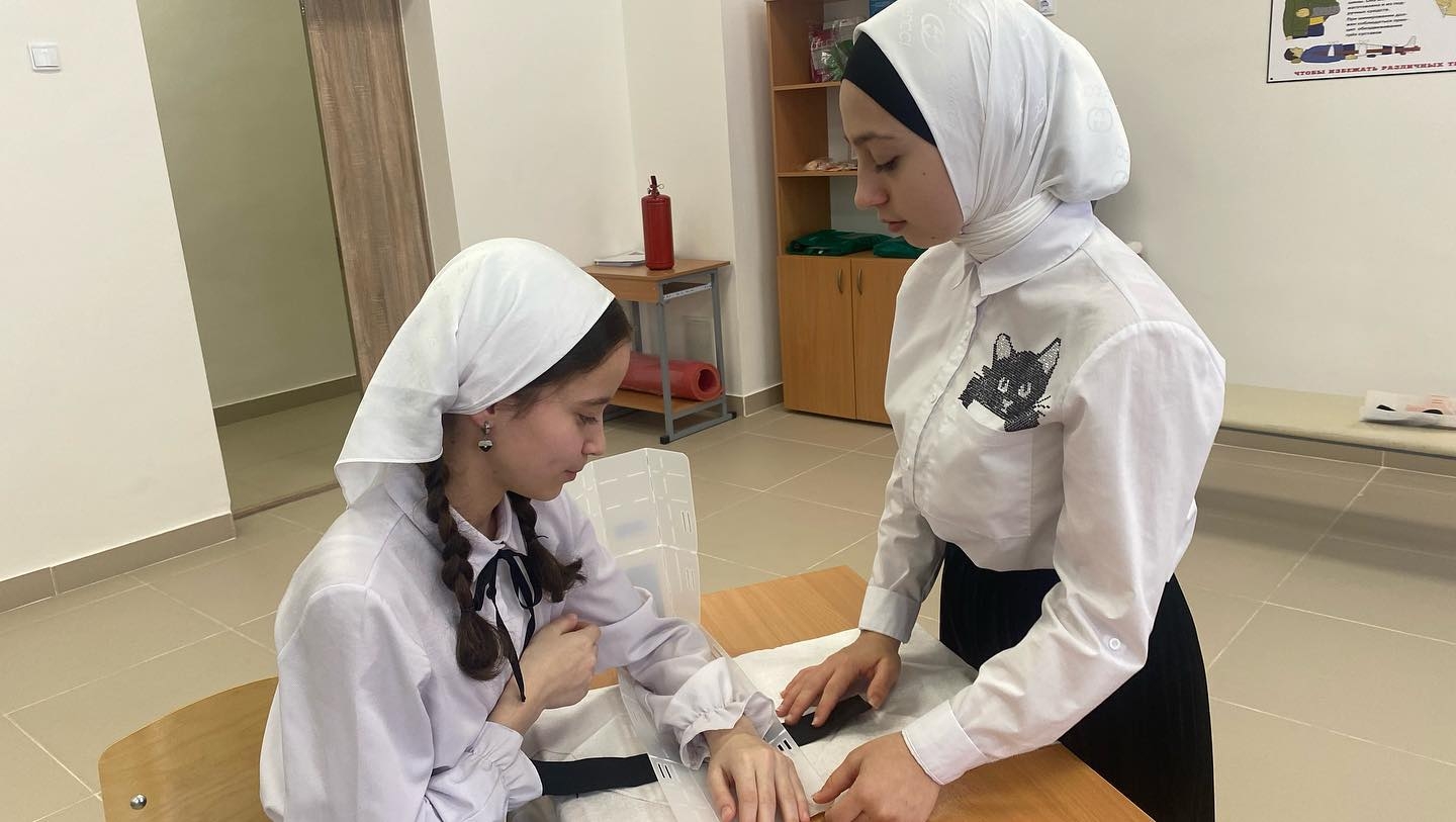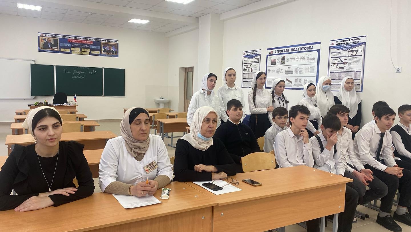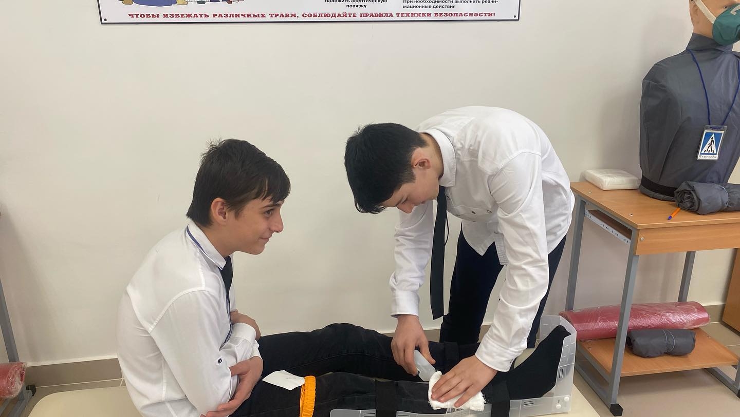 В рамках проведения Всероссийского дня обороны в “МБОУ «СОШ №7» г.Аргун, прошел Открытый урок по предмету ОБЖ на тему: «Оказание первой медицинской помощи при травмах различной степени тяжести». В ходе урока ученики 8 «Б» класса провели наглядную инструкцию по правилам оказания медицинской помощи при травмах шейного отдела, верхних, нижних конечностях и при сильном кровотечении. Таким образом, такого плана уроки направленны на лучшее восприятие и изучение материала учениками.