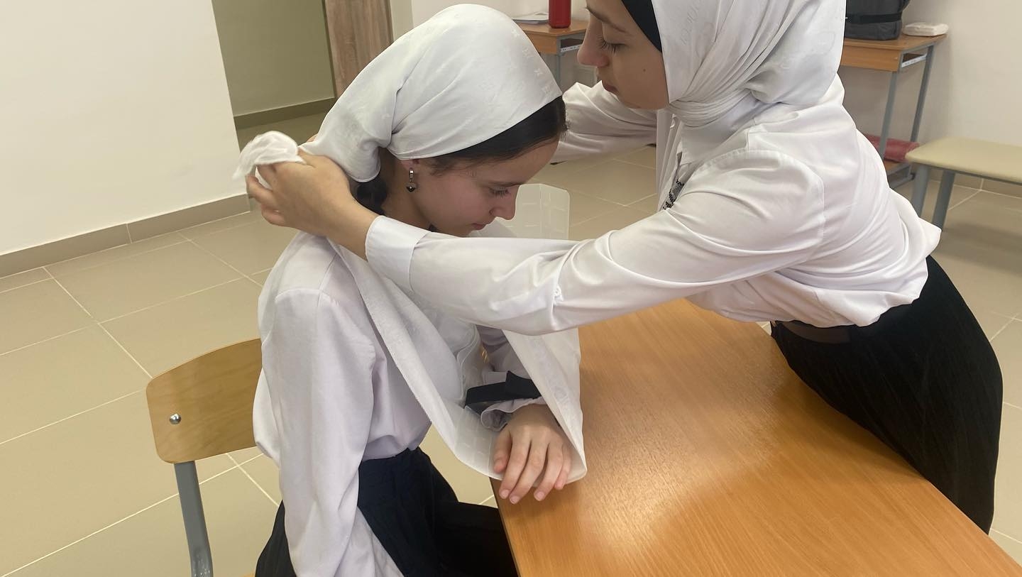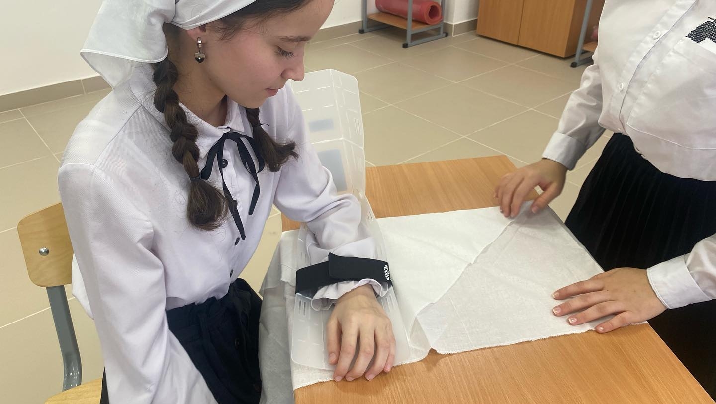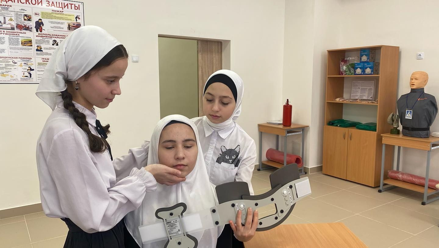 В рамках проведения Всероссийского дня обороны в “МБОУ «СОШ №7» г.Аргун, прошел Открытый урок по предмету ОБЖ на тему: «Оказание первой медицинской помощи при травмах различной степени тяжести». В ходе урока ученики 8 «Б» класса провели наглядную инструкцию по правилам оказания медицинской помощи при травмах шейного отдела, верхних, нижних конечностях и при сильном кровотечении. Таким образом, такого плана уроки направленны на лучшее восприятие и изучение материала учениками.