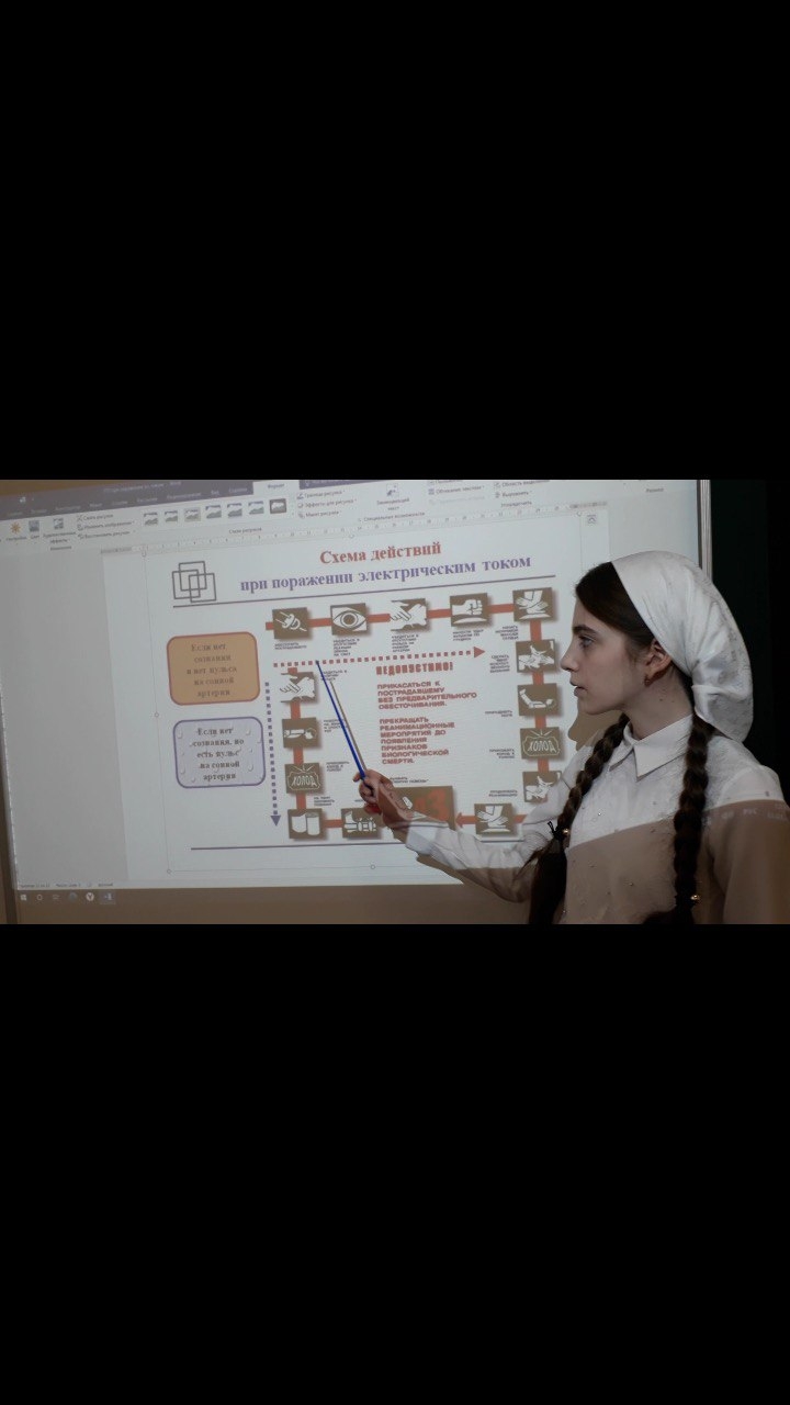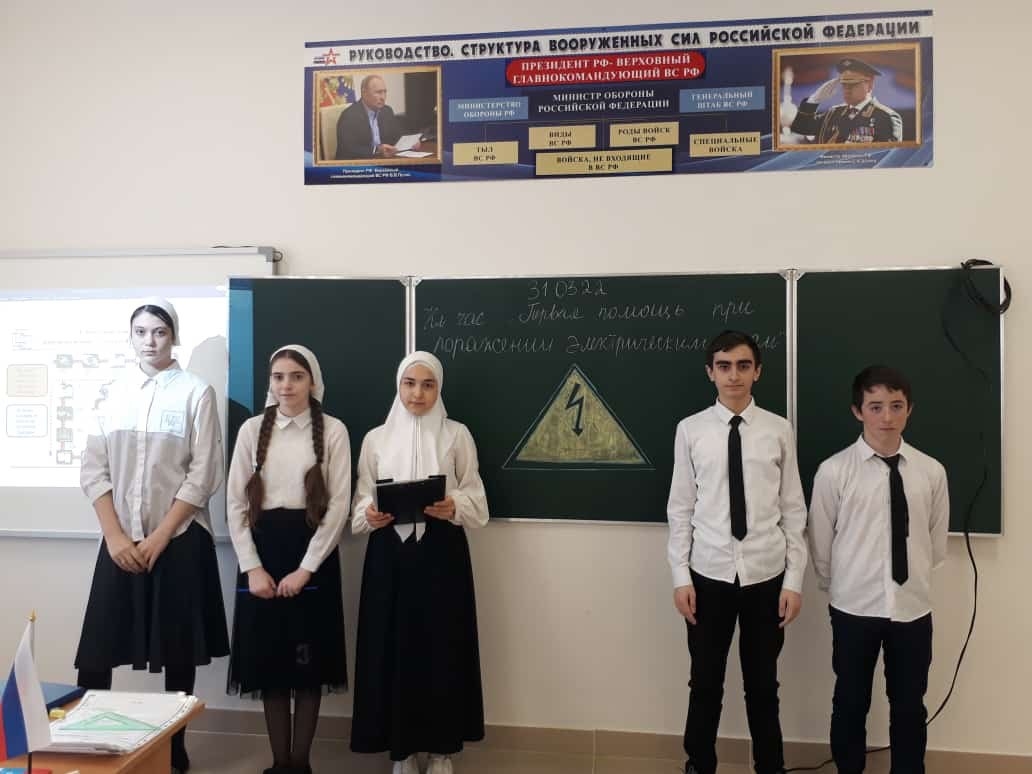 Участие отряда «Юнармия» в проведении классного часа на тему: «Первая помошь при поражении электрическим током»