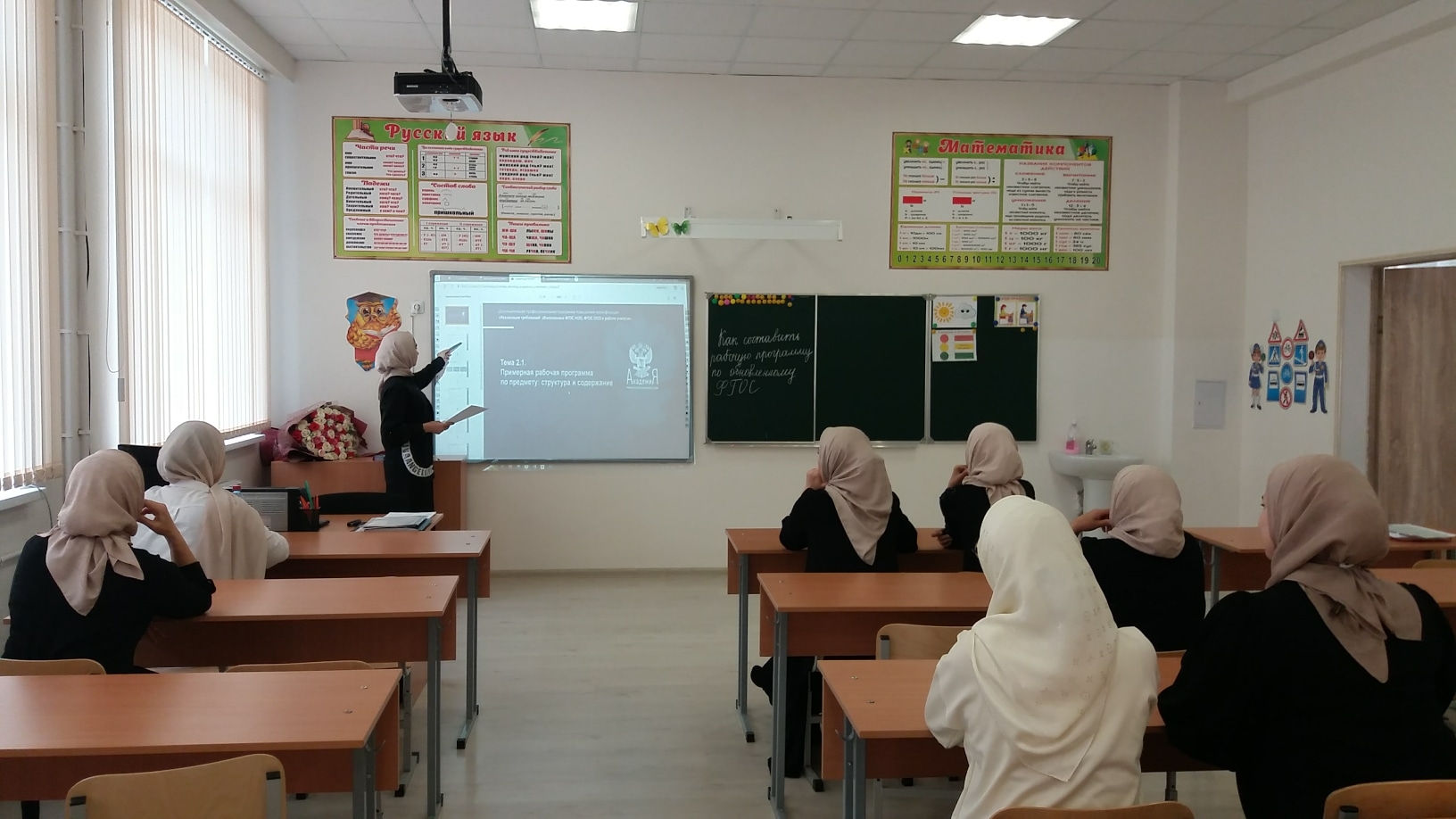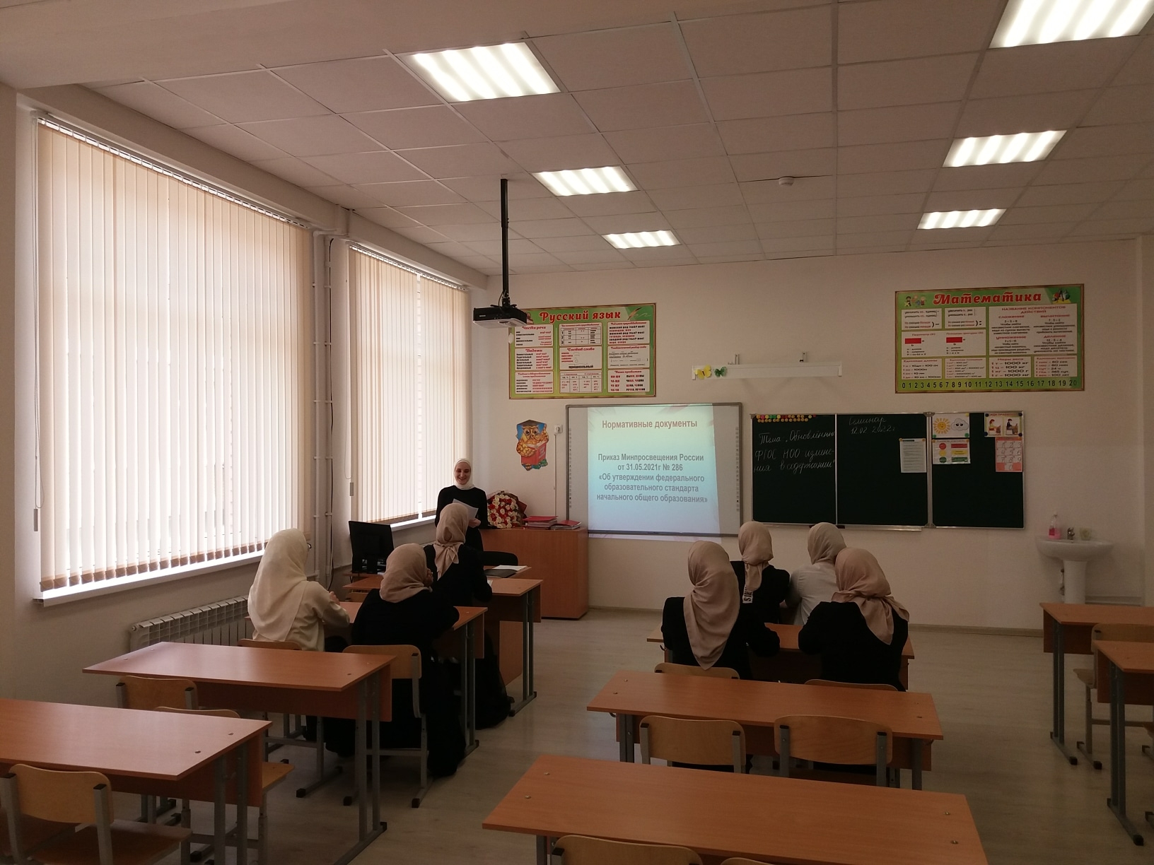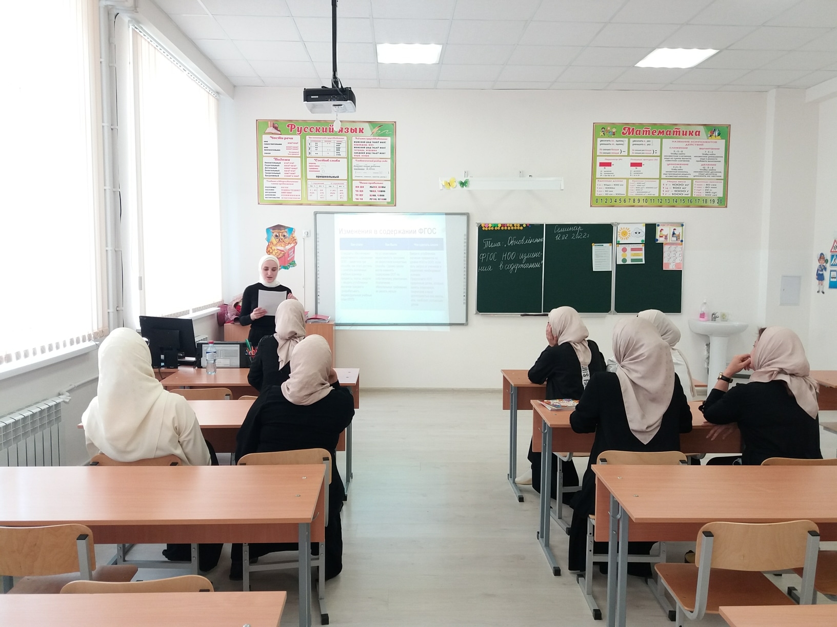 Семинар по обновленным стандартам ФГОС на тему: "Об утверждении ФГОС НОО" провела руководитель МО начальных классов Мусхаджиева Х.Р.