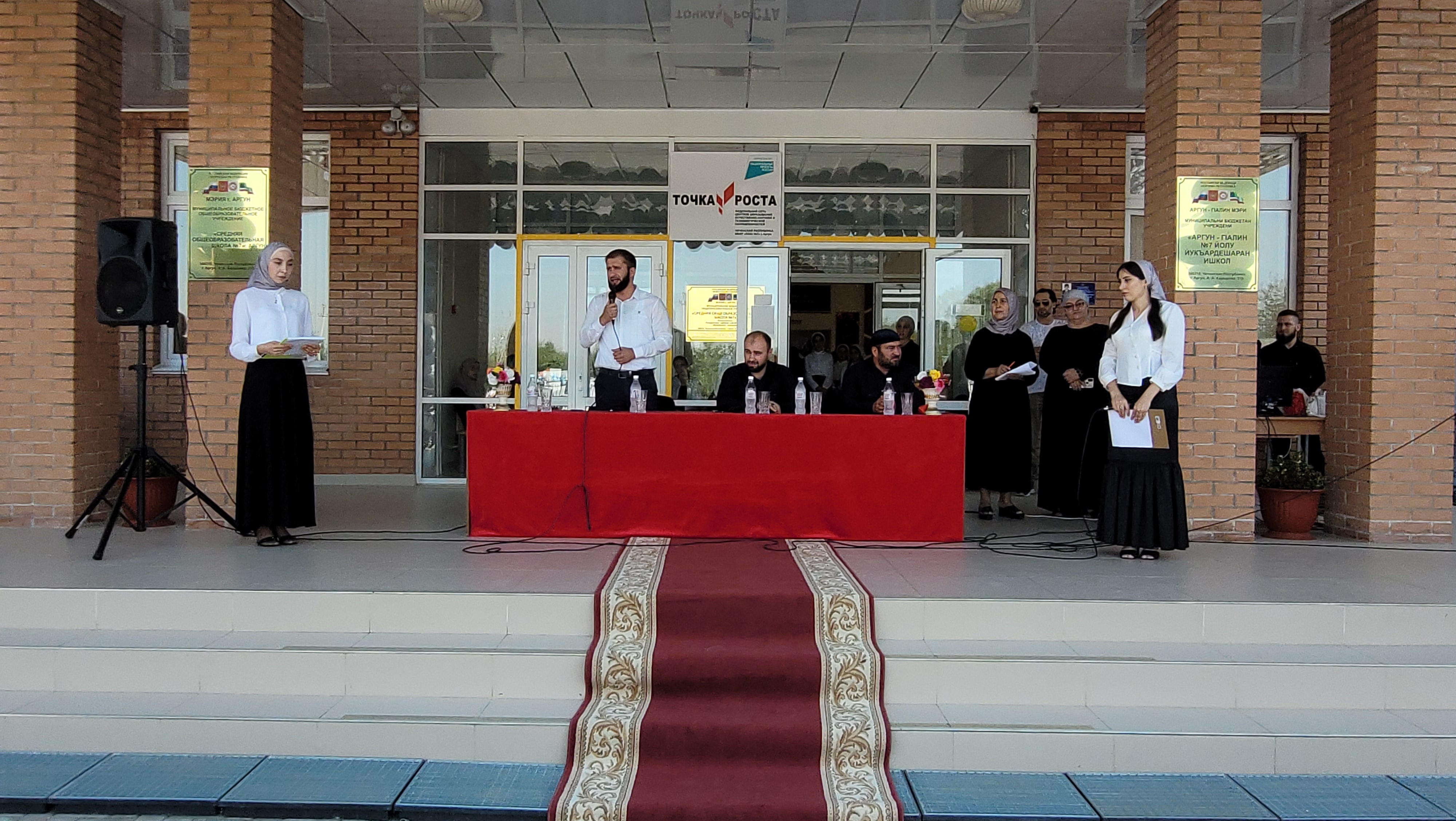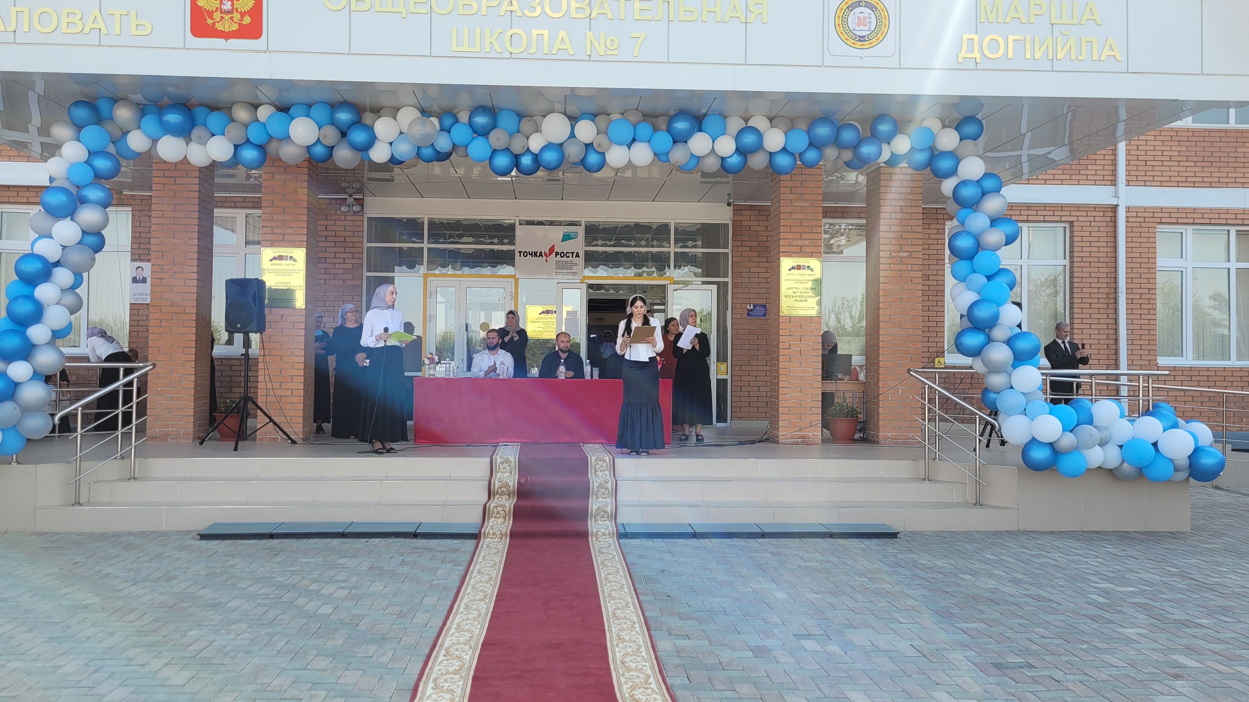 В МБОУ "СОШ №7" г. Аргун прошла торжественная линейка, посвящённая дню знаний. Традиционная линейка и в этом году была торжественной и красочной, однако в этот раз она сопровождалась поднятием флагов и исполнением гимнов Российской Федерации и Чеченской Республики.