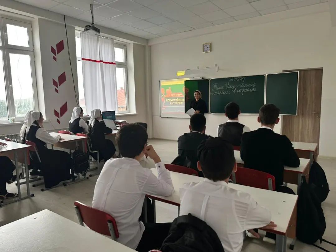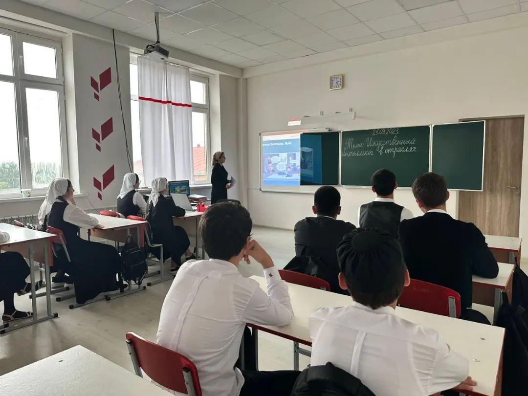 22.09.23 Дамаева З. провела открытый урок в 7 "А" классе по материалам Благотворительного фонда "Вклад в будущее" на тему: "Искусственный интеллект в отраслях".