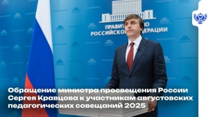 «Дорогие друзья! Мы вместе формируем будущее страны. Каждое решение влияет на судьбы миллионов детей. Я уверен, что благодаря вашему профессионализму и неравнодушию новый учебный год станет ещё одним важным шагом вперёд, вместе мы справимся со всеми задачами, сохраняя традиции и внедряя новое. Хочу пожелать вам здоровья, вдохновения и радости от успехов ваших учеников! С новым учебным годом!» — сказал Сергей Кравцов.