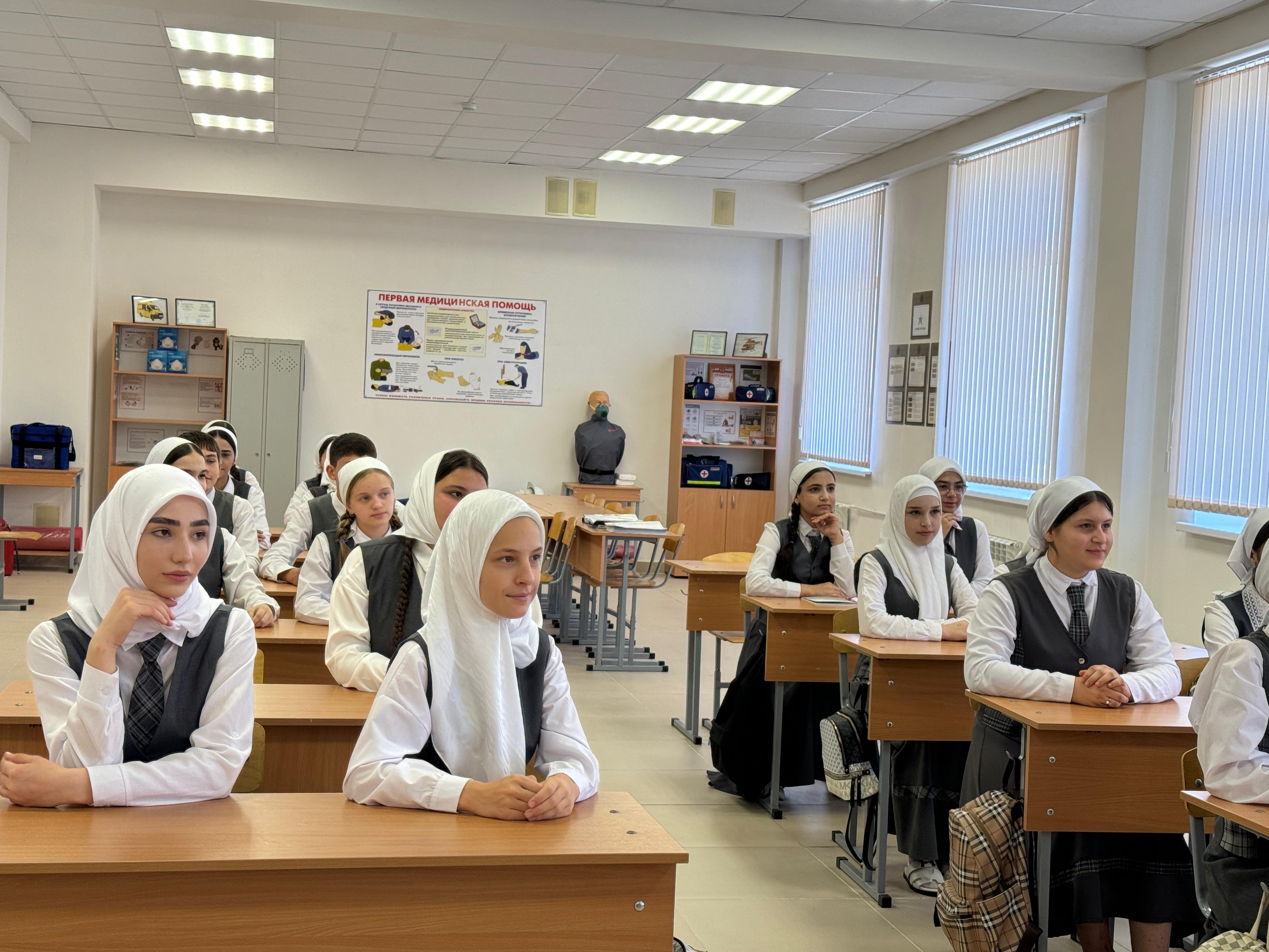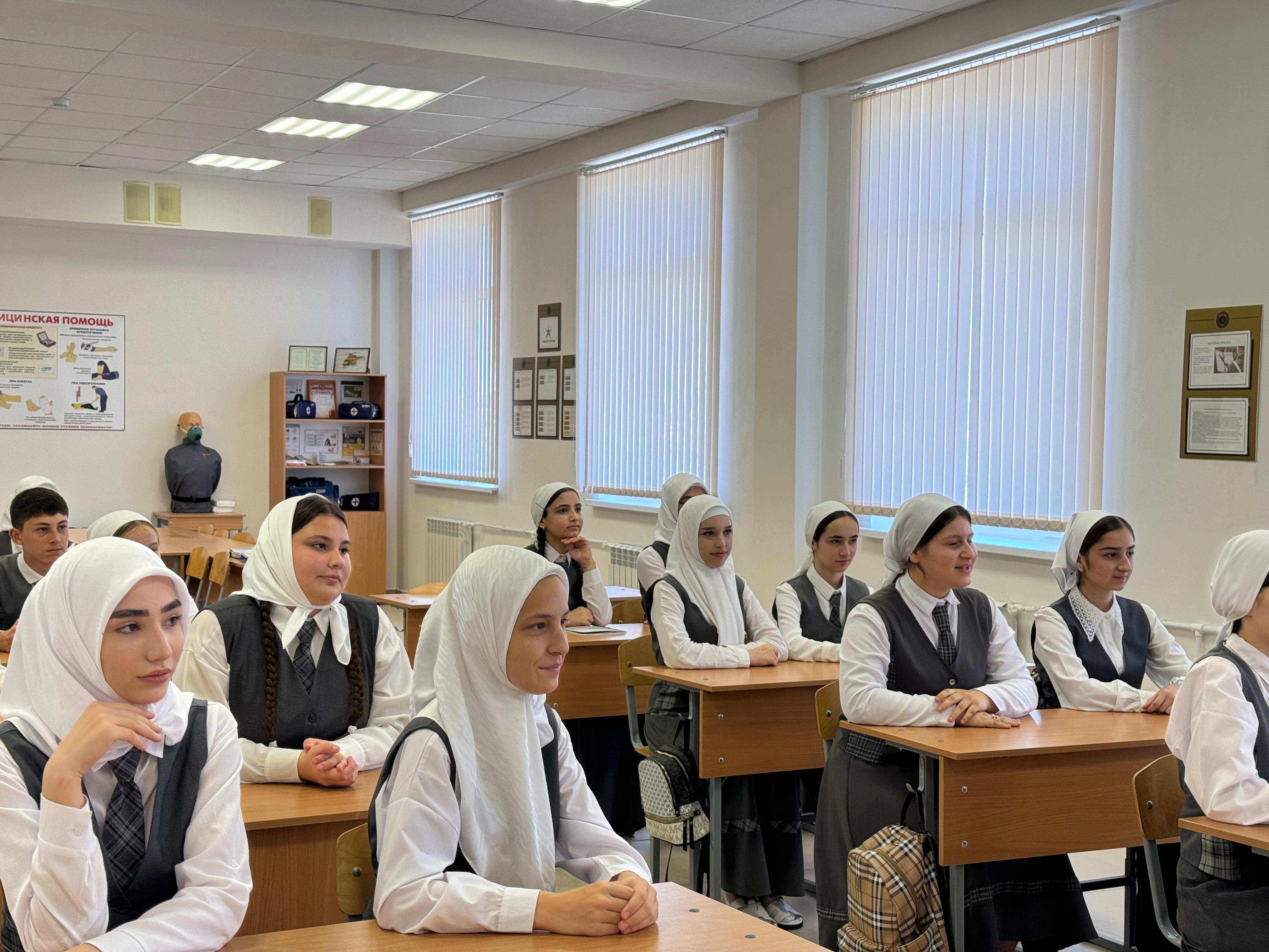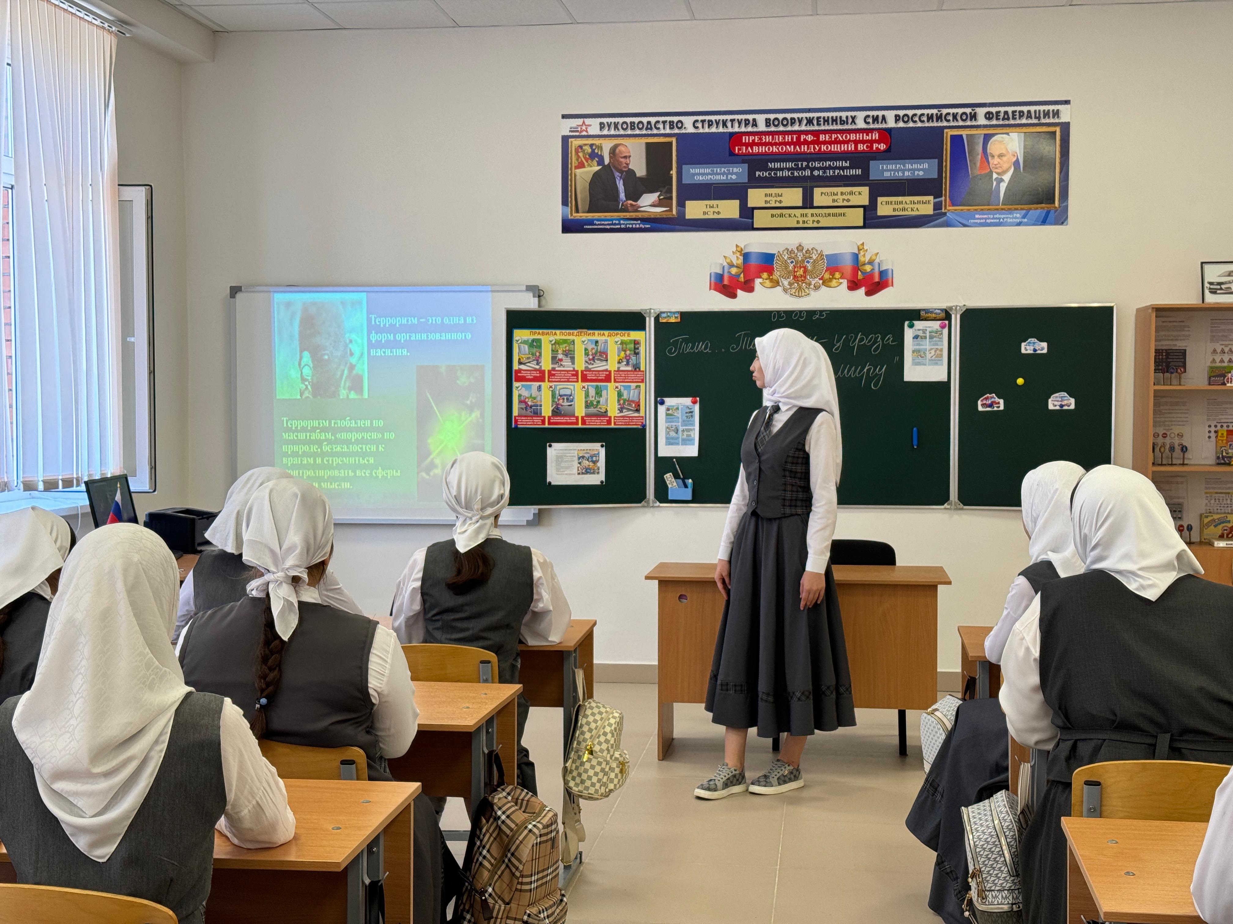 В МБОУ «СОШ №7» г. Аргун, учитель ОБЗР Абдулмаликова Х. Х. провела беседу с обучающимися по вопросам антитеррористической безопасности, ко Дню солидарности в борьбе с терроризмом.